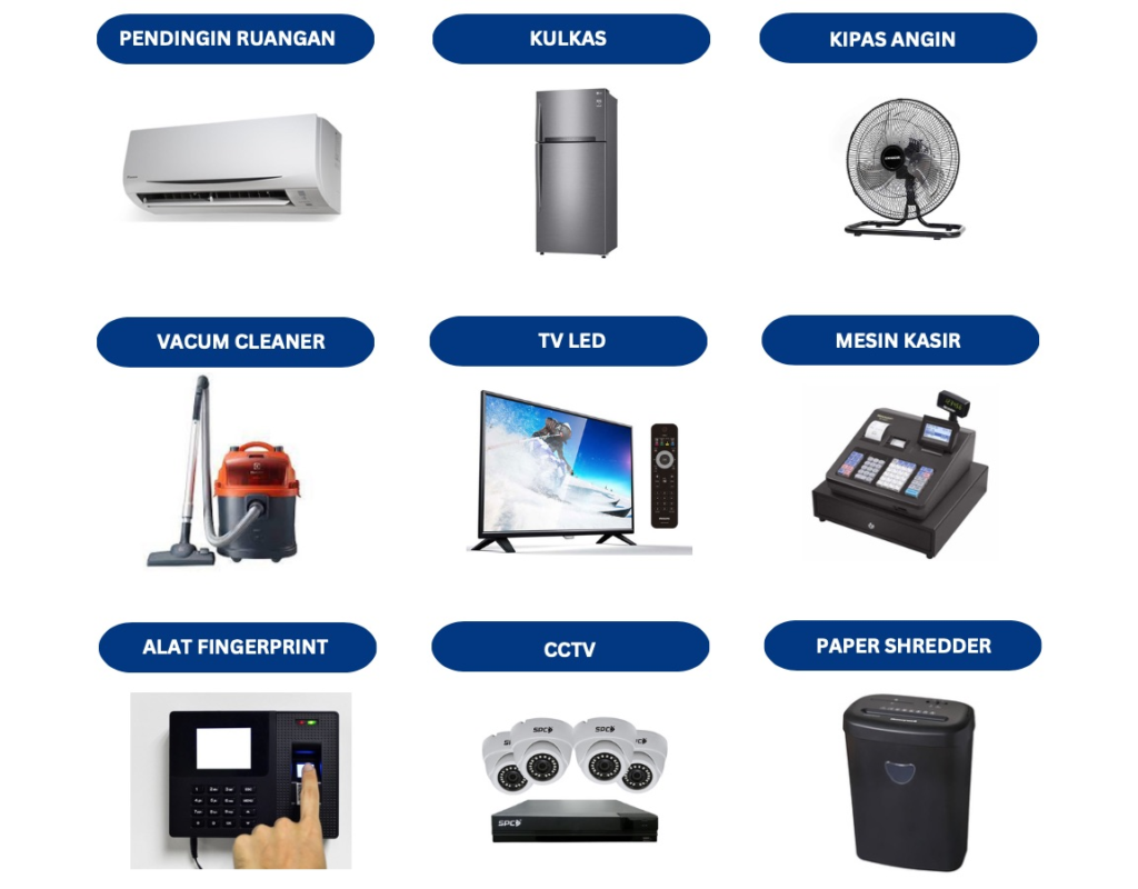 - Mesin Penghancur Kertas: Mengamankan kerahasiaan dokumen.